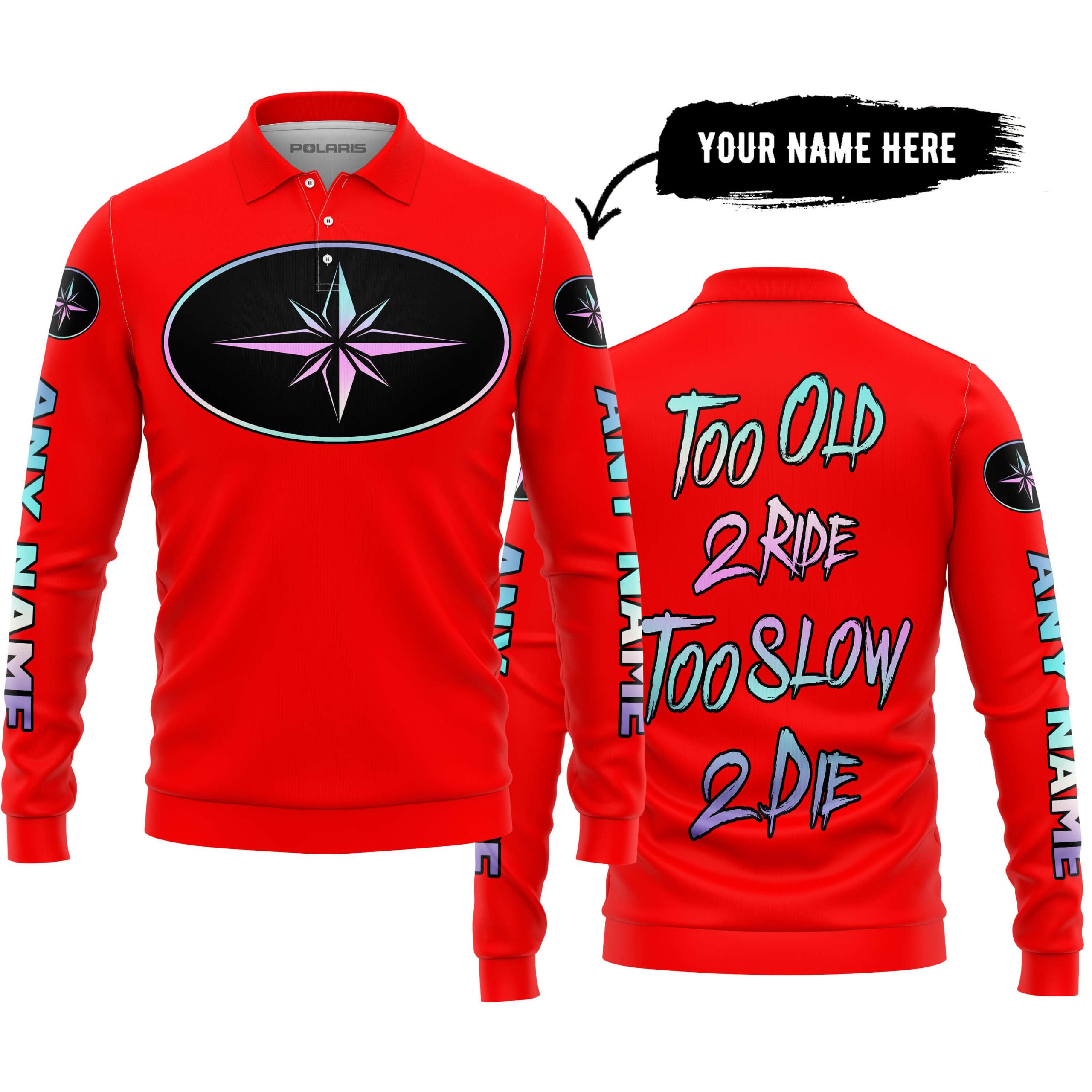 TOO OLD TO RIDE TOO SLOW TO DIE – CUSTOM NAME – POLARIS – RED – LONG SLEEVE POLO SHIRT